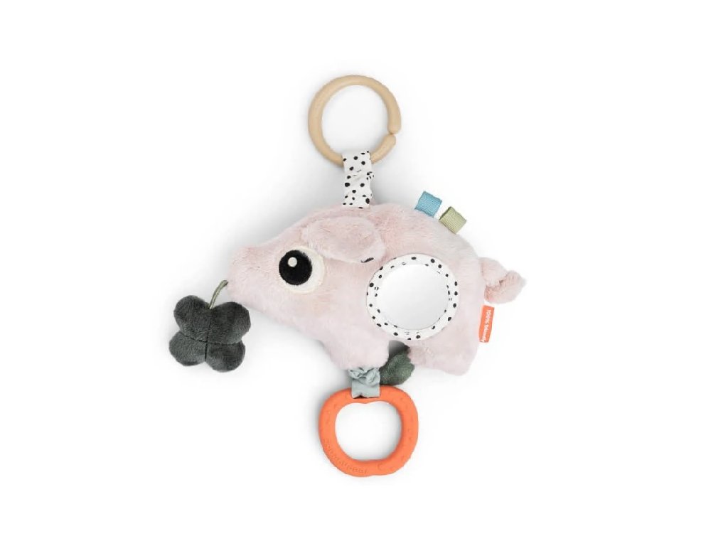Senzorická hračka Pigee je plná stimulujících funkcí. Doporučeno od 0 měsíců – ideální pro rozvoj zraku vašeho novorozence a prozkoumání všech funkcí při pozici na bříšku a sezení. Zábavné barvy a kontrasty pro vizuální stimulaci - zrcátko, čtyřlístek, barevné štítky, měkké kousátko.