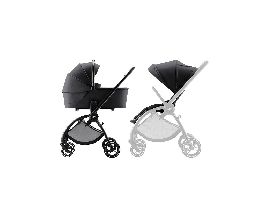 Díky nízké hmotnosti a praktickému systému CLICK & GO® je připevnění korby k podvozku kočárku Rio rychlé a jednoduché. Korba je navržena tak, aby byla snadno přenositelná a skladná, což oceníte při cestování nebo ukládání.