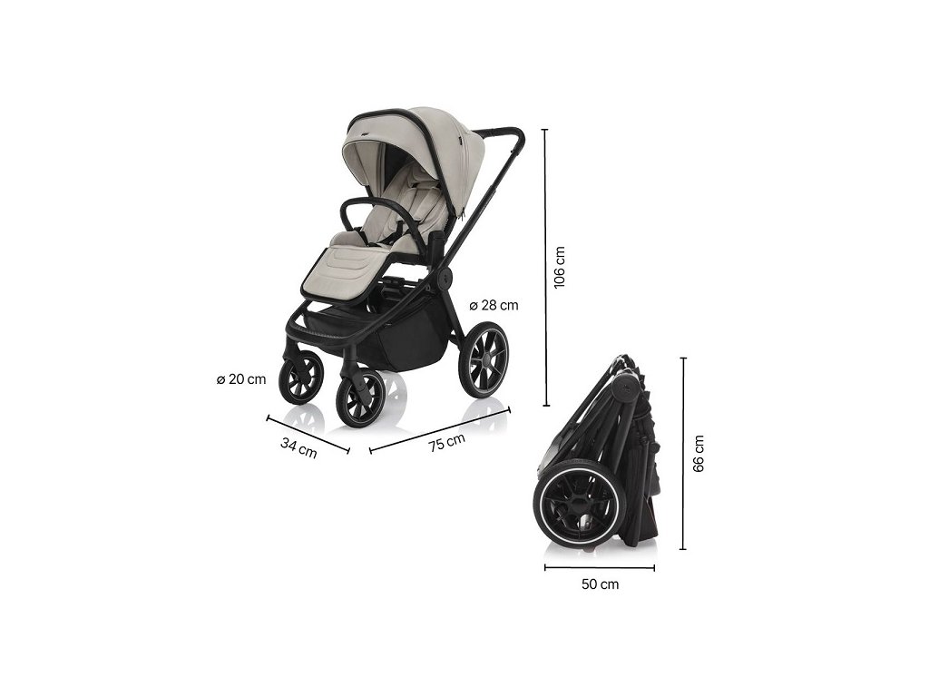 • Rozměry složeného kočárku (š × v): 50 × 66 cm