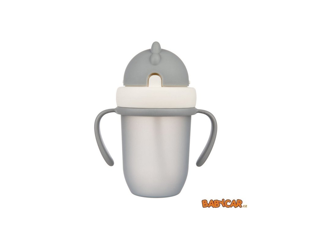 Stylový hrníček o objemu 210ml se silikonovou slámkou, v designově matných odstínech, je určen pro děti starší 9-ti měsíců, které již umí samy pít. Ideální na cestování nebo procházky. Praktické rukojeti skvěle padnou do dětských ruček. Transparentní nádoba zajišťuje lepší kontrolu vypitého množství. Tzv. Flip-top systém je skvělý způsob, jak si udržet slámku vždy čistou. Hrníček neobsahuje BPA a je vyroben z bezpečného materiálu, který je odolný proti poškození.