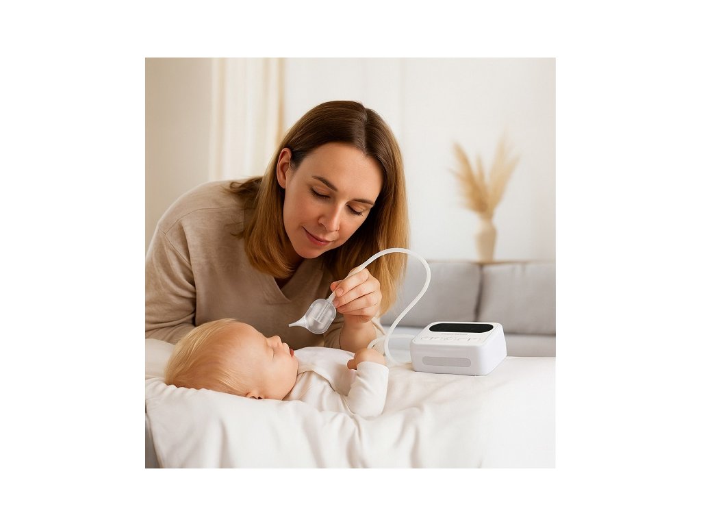 Před použitím: Odsávačka účinně čistí nosní cesty, což pomáhá kojencům a malým dětem pohodlněji dýchat. Přístroj nabízí 9 úrovní odsávání, které umožňují přizpůsobit intenzitu odsávání typu hlenu – od lehkého a suchého až po hustý a vlhký. Měkké silikonové nástavce jsou šetrné k citlivému nosu dítěte. Před použitím je doporučeno je dezinfikovat bezpečnou metodou.