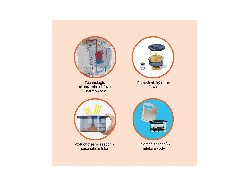 Funguje podobně jako automatický kávovar – jen místo kávy připraví dokonale namíchané mléko pro vaše miminko během několika vteřin. Užijte si více času se svým dítětem a méně starostí při každém krmení, ve dne i v noci.