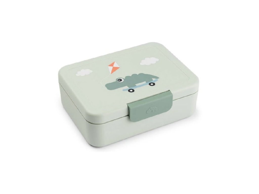 Krásná krabička na svačinu se snadno otevírá a zavírá. Zvuk kliknutí usnadňuje zjištění, kdy je zavřená. Uvnitř je praktická přepážka, kterou lze oddělit jídlo. Krabička má hezkou modrou barvu se zábavným motivem Croco.