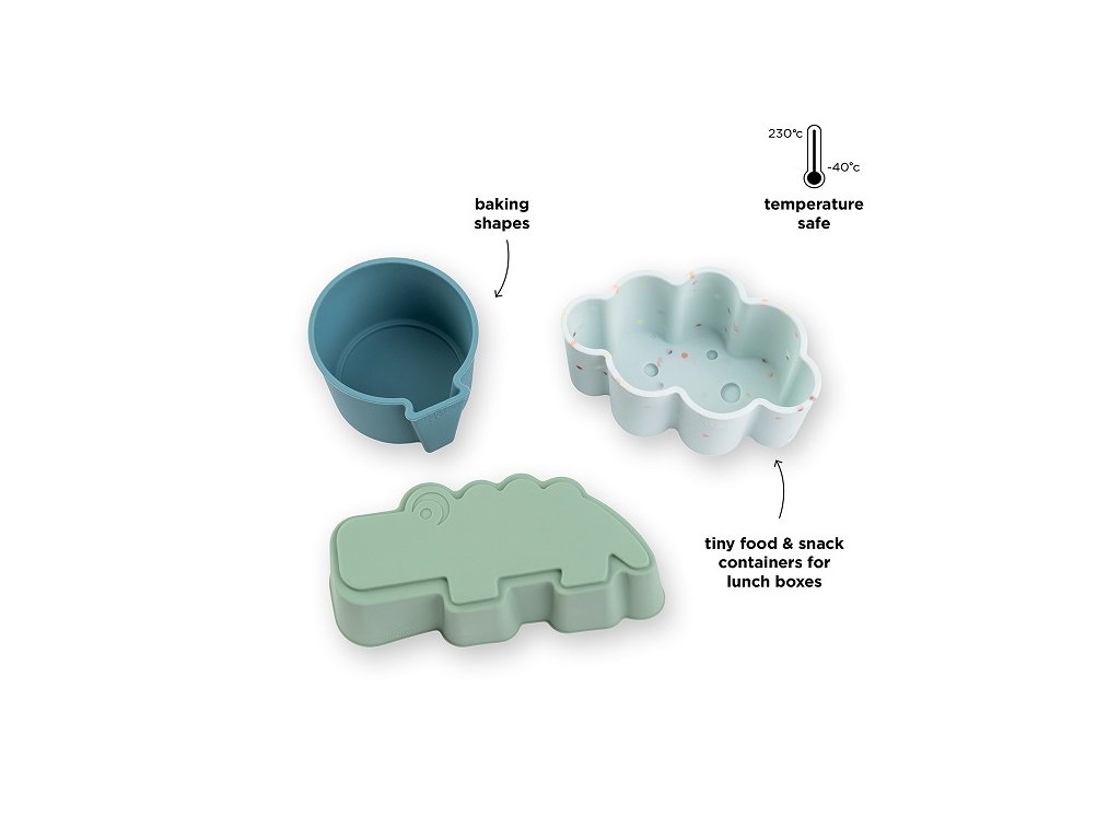 Zábavné silikonové mističky jsou skvělé pro skladování potravin a jako mističky, které lze vložit do svačinové krabičky. Mohou být použity i pro pečení malého muffinu.
