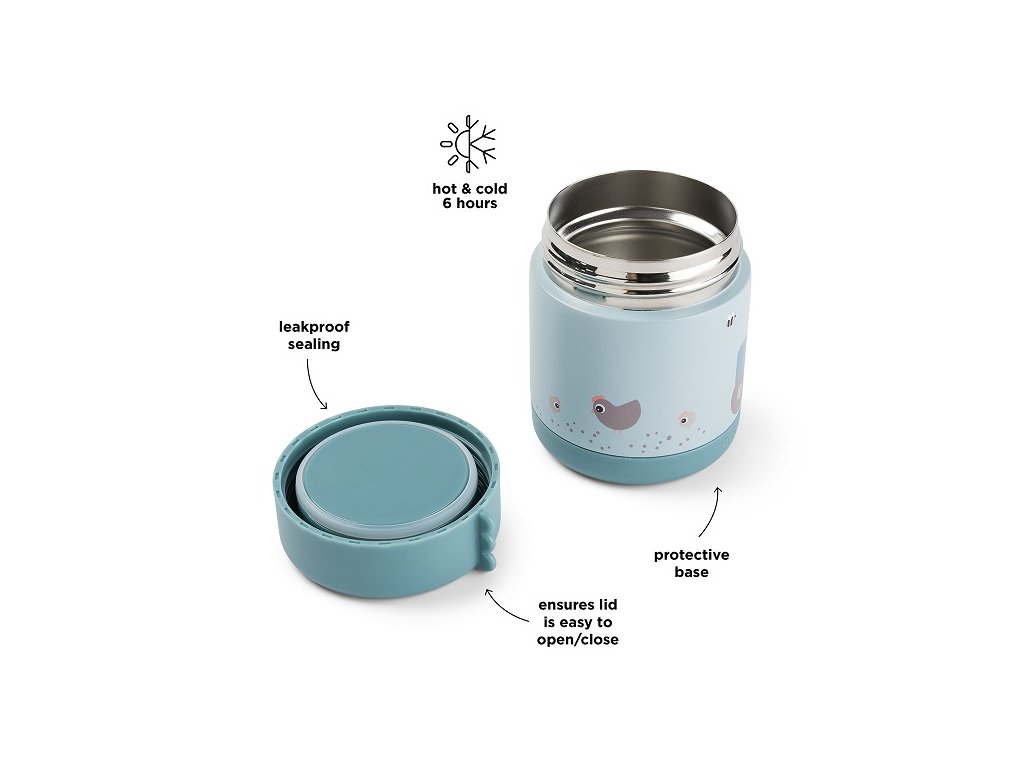 Roztomilá dětská termonádoba s krásným motivem Pigee a Dotti. Termonádoba má snadné otevírání. Silikonové těsnění činí nádobu vzduchotěsnou a nepropustnou. Udržuje jídlo teplé nebo chladné po dobu až 6 hodin. Ideální pro předškolní, školní a venkovní dobrodružství.