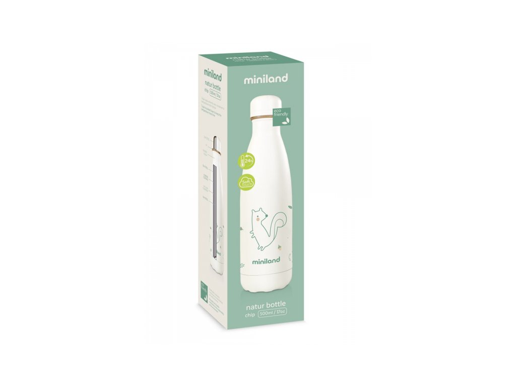 Vakuová termoska Miniland ve tvaru láhve je vyrobena z vysoce kvalitní dvoustěnné oceli a díky tomu udrží až 24 hodin požadovanou teplotu nápoje. Termoska je potažena jemným materiálem pro příjemné uchopení.